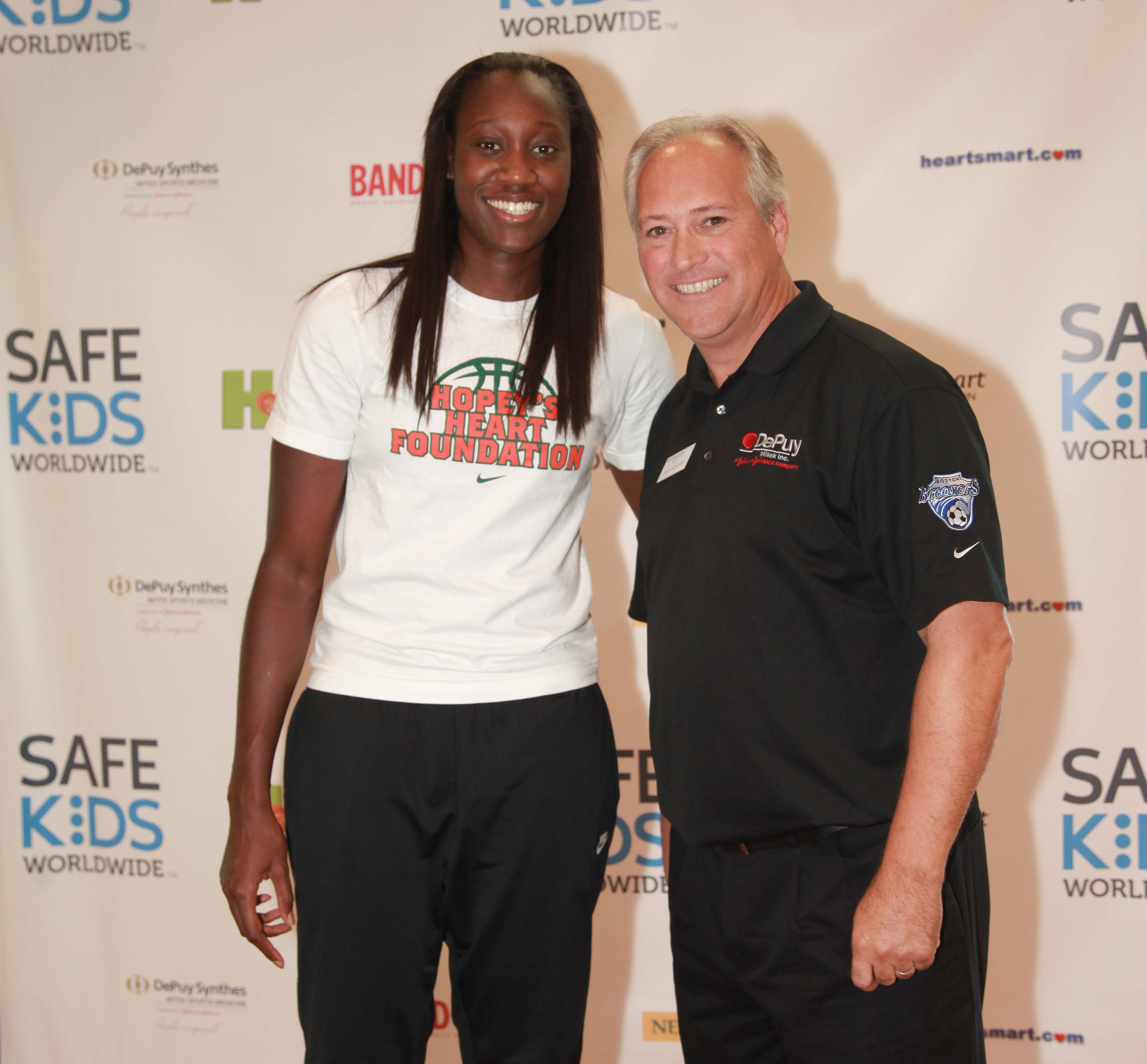 More than 100 local youth athletes, coaches and parents joined Safe Kids Worldwide and Tina Charles, WNBA star and 2012 MVP, for a Hopey’s Heart and Safe Kids Sports Safety Clinic. Participants learned how to avoid dehydration and prevent sports injuries such as concussions and overuse and acute injuries. They also learned the importance of pre-participation exams and being prepared with CPR, first aid and AEDs (Automated External Defibrillators).