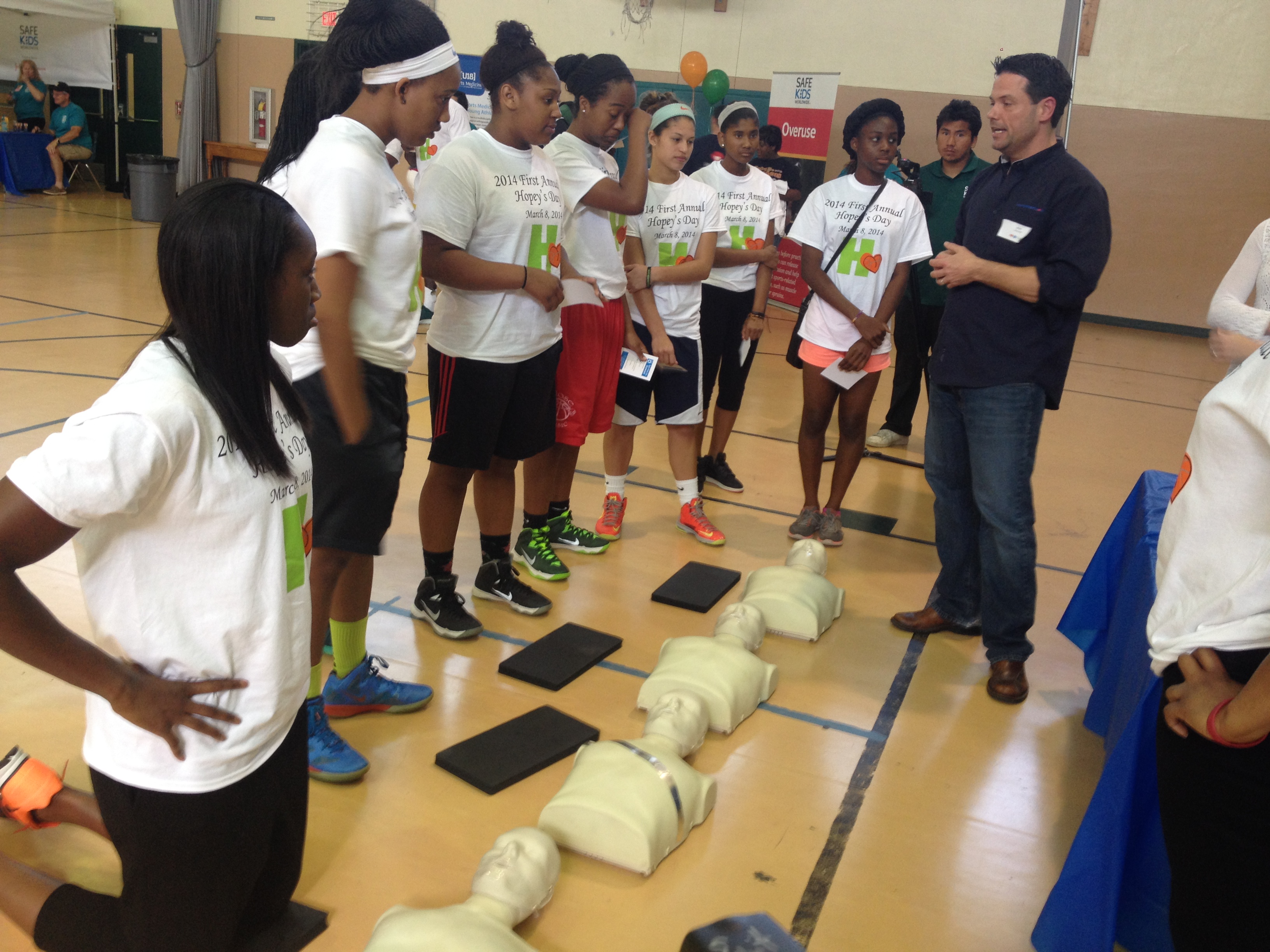 Hopey’s Day also included “Hopey’s Challenge,” involving a 3pt contest for 6 of the participants. Each athlete received an autographed postcard from Tina Charles that had sports safety tips from Safe Kids Worldwide on the back. At the end, Heartsmart and SafeKids Worldwide surprisingly donated 47 AEDs to Hopey’s Heart Foundation to achieve its goal of reaching 100 recipients each year. Hopey’s Heart Foundation currently had 53 recipients. Another recipient of an AED from Heartsmart included Charles Flanagan Highschool.