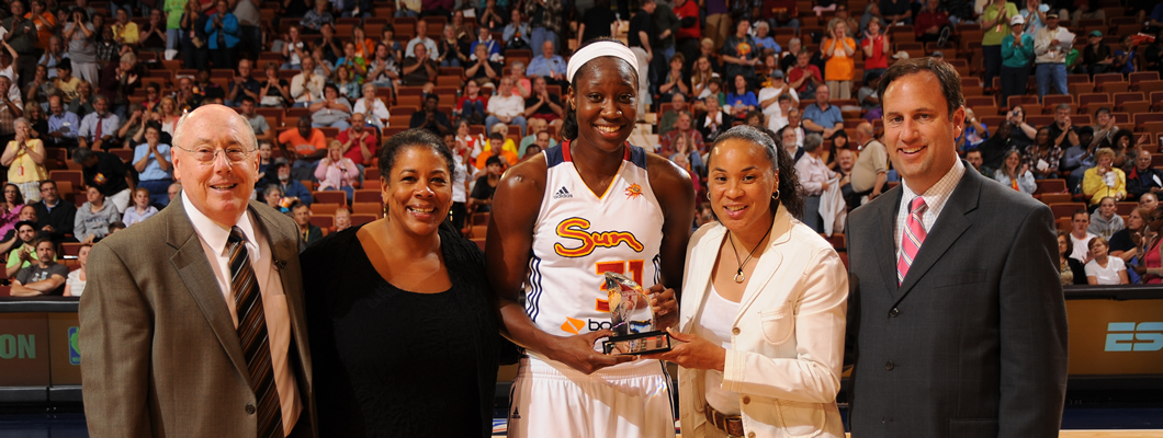 Tina Charles is the personification of the WNBA’s mission to inspire others both on and off the basketball court. Tina is not only an outstanding athlete, but a generous giver who funded the full cost of an elementary school in Western Africa. We are so proud of her accomplishments.
